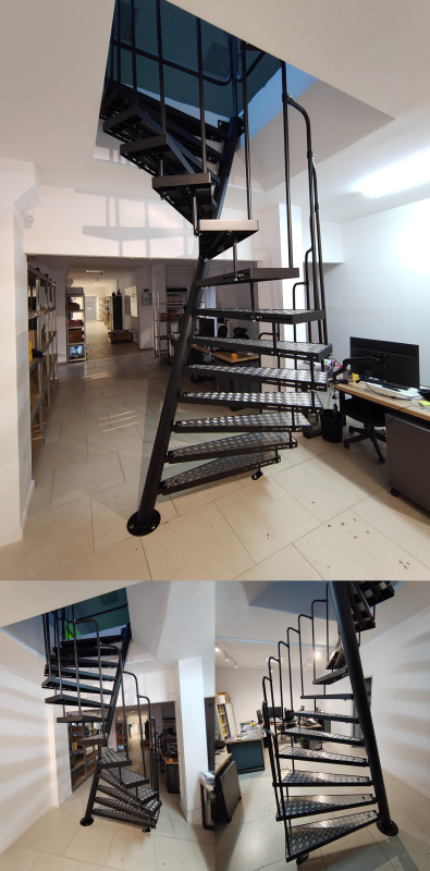 Unsere Gesellschaft hat ein anderes Sonderprojekt realisiert – eine Wendeltreppe, die entworfen, ausgefertigt und in einem Raum eingebaut wurde, den viele andere Anbieter problematisch finden könnten. Andere sagten: „Das geht nicht“ – zu eng, zu niedrig, zu wenig Platz. Wir verfolgen jedoch einen anderen Ansatz: Es geht immer – man muss nur die richtige Lösung finden.